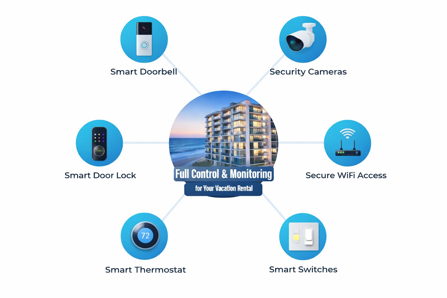 Remotely manage guest access, secure doors, reset thermostats, and monitor your property from anywhere—saving you time, reducing stress, and preventing unnecessary energy and security costs.